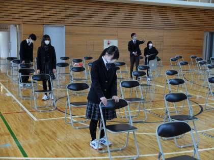 着任式・始業式を終えた委員会の生徒が明日の入学式に向けて,清掃や会場の準備をしました。明日,元気に登校してくるかわいい1年生のために。とても楽しみです。待っていますよ。