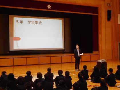5年1組・2組・3組・4組の担任の先生の小学校5年生の時の写真と共に自己紹介がありました!幼いころの姿に「ワー!エー!」という歓声が上がりました!
