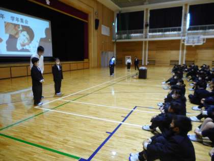 その後,交流学級の紹介,1年間の行事,チームステージの学校生活についてお話がありました。