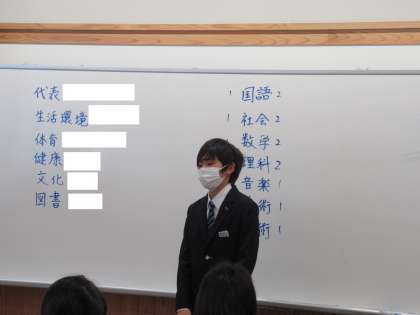 学級役員,教科係の選出を行いました。一人一人が自分の役割を自覚し,クラスや学年,ステージを引っ張ってほしいと思います。抱負を堂々と話す姿から,頼もしさを感じます。