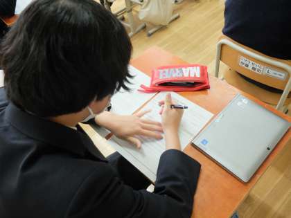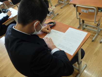 今日の学活ではキャリアパスポートを配布,記入をしました。進路をきりひらくこの1年間,まずは今の自分をみつめることが大切です。キャリアパスポートでは6年生から毎年,記入しています。