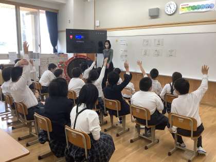 英語の学習がはじめての1年生も,英語のあいさつや,歌,ダンスなどにチャレンジしていました。今年度もみんなで楽しく英語の学習を進めていきたいです。