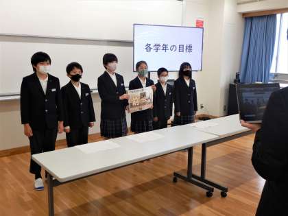 ステージの先生や各学年目標の紹介,そして,ステージのみんなのために頑張っている生徒への「みんなのためで賞」の表彰などが行われました。