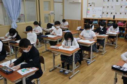 4年2組の書写の学習の様子です。