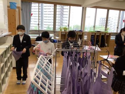 今年度も5〜9年生の縦割りグループで1組目標の「貢献」にあたる学習活動に取り組んでいます。昨年度から「クリーニング」や「ハンドアウト」の活動では教職員の皆さんや生徒の皆さんから「ありがとう」とたくさん感謝され,自分たちの活動に自信をつけてきました。5年生は4年生のころから「すごいな,やってみたいな」という気もちをあたためてきてくれたと思います。今年は新たに「クリーニング」「ハンドアウト」に加えて「清掃」の3班にわかれて学習をスタートしました。活動の様子は随時アップしていきます!