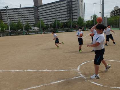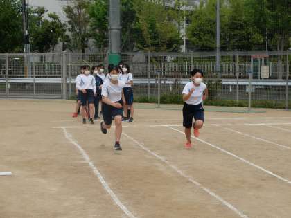 8年生の体育では「新体力テスト」に取り組んでいました。今日の種目は50m走,ハンドボール投げ。昨年から自分の体力は伸びているでしょうか?