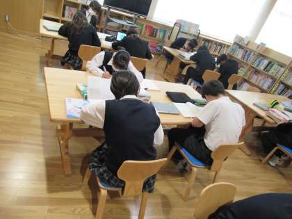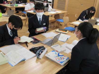辞典・事典の種類や特性を知り,使い方を学ぶ学習を図書館で行いました。