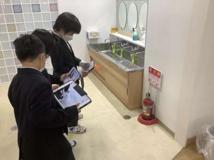 5・6年生の社会では「防災」について学習しています。校内にもたくさんの防災設備があることを知り,さっそく調べに行きました。「これは何かな?」「どうして何個もあるのかな」など生徒から疑問がたくさん出てきました。その疑問を解決すべく,生徒が中心になって学習を進めていきたいと思います。
