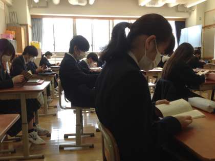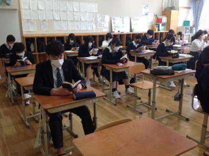 ビジョンステージは,今は,朝読書の時間。9年生はそれぞれ,自分の本の世界に入っています。どんな世界にいるのでしょう。静かな時間が流れています。
