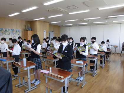 低学年のころに歌ったことを覚えていた子も多く,はじめの授業にも関わらず,とてもきれいな声で歌うことができていました。