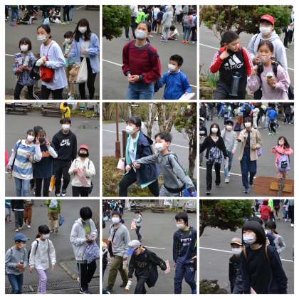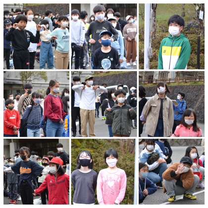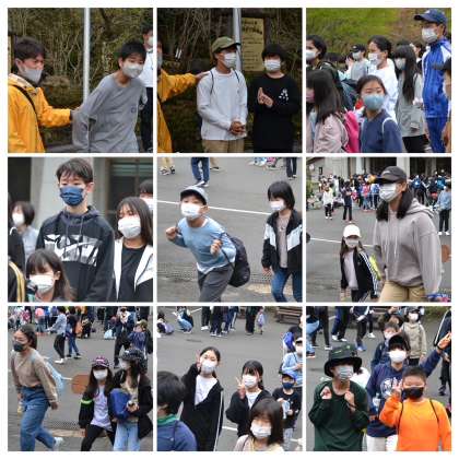朝の集いの様子、そして、朝ご飯の炊事場にグループごとに移動していく様子です。宿泊学習の秀蓮体操は、もはや秀蓮の定番ですね。