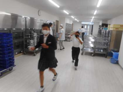 6年生・7年生の姿を見て,5年生も給食返却のお手伝いをがんばっています!