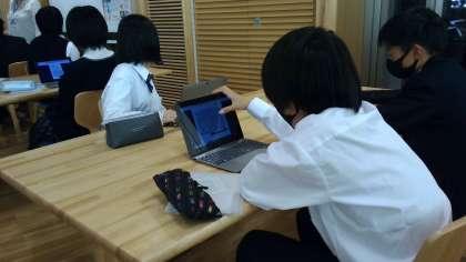 今年度は,「学校図書館活用ノート」をGIGA端末にダウンロードし,「めくる」のではなく,「スワイプ」しながらのオリエンテーションとなりました。今後は,紙をめくることで得られる図書のメリットと,今日のようなICTのメリットを活かし,それらを融合することで,対話的な学びにつなげていきたいと思います。