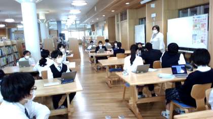 7年生は,メディアセンター(図書館)のオリエンテーションを行いました。普段,あまり意識することがなかった本の冊数を聞き,驚く様子が見られました。また,読書を行うことで,「ものの見方や考え方の基礎を培い,物事を正しく判断できる力につながります。」ということを聞き,積極的に図書を借りようとする姿もありました。