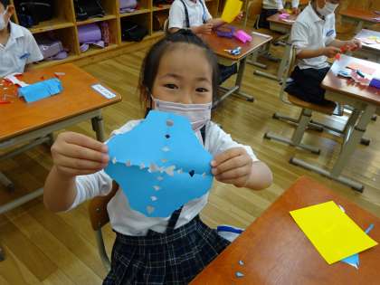 1ねんせい 図工「ちょきちょきかざり」