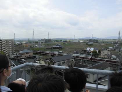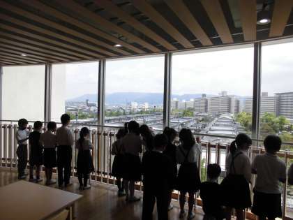 校区の様子を地図にまとめるために,校舎の4階や5階からまちの様子をながめました。