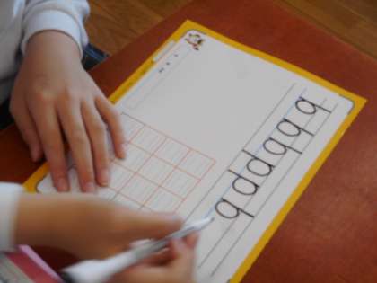 後期課程の先生に書き方のコツを教えていただき,集中して書いていました。