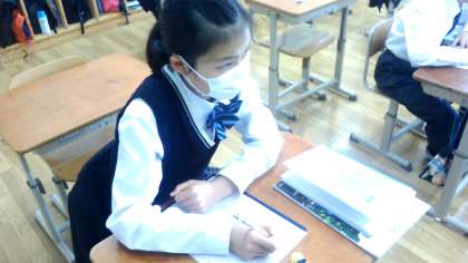 これは,前期課程より続けている「English Day」の取組や昨年度より始めている「グローバルコミュニケーション活動」そして外国語授業などを積極的に頑張ってきているからだと思います。