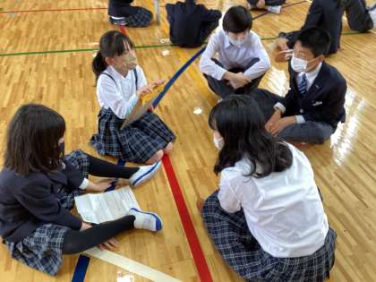 4年生と8年生で「山の家」のふり返りをしました。楽しかったことはもちろん,グループの友だちと協力したことなどたくさん話し合いました。4年生は「山の家報告会」もあります!