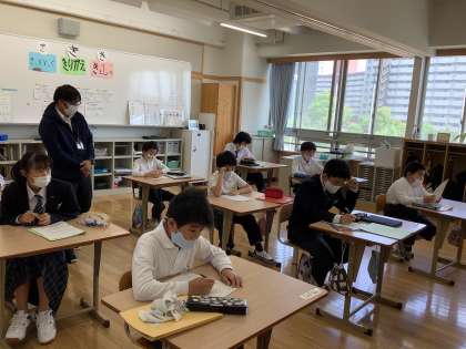 算数は5〜9年生のたてわりグループで学習しています。毎時間,めあてを明確にしながら学習を進めています。宿題はもちろん,自主学習もどんどん進めてほしいです。