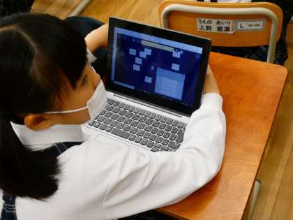 国語科の学習でGIGA端末を使って学習を進めました。春を感じる言葉を考えてカードを出し,ロイロノートの提出箱でみんなの考えたカードを共有しました。
