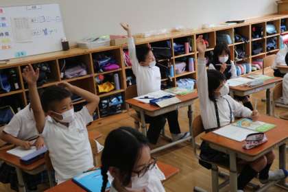 算数の学習では「わり算」を学習しています。どんな考え方ができるかな?自分の考えをたくさん発表しようとする姿が見られました。