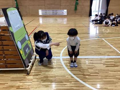 交通安全教室で交通ルールや安全な登下校について学習しました。横断歩道をわたるときに気をつけることを発表することができました。安全に気をつけて毎日元気に登校してほしいです。