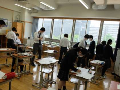 9年生は蓮花タイムで〜視野を広げて 私たちにできること〜の学習を進めています。修学旅行で行く広島での平和学習に向けての事前学習として,世界の情勢や,これまで学習した歴史を手掛かりに平和とは何かを考えています。