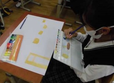 図工では,心に残った思い出を絵に表しています。