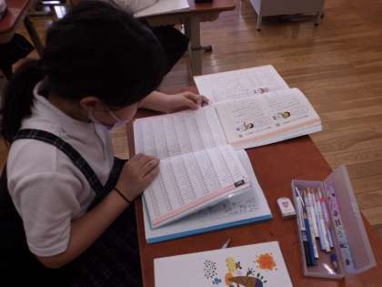 辞典を開いて,漢字の成り立ちや部首を調べる作業も,少しずつ慣れてきたところでしょうか。