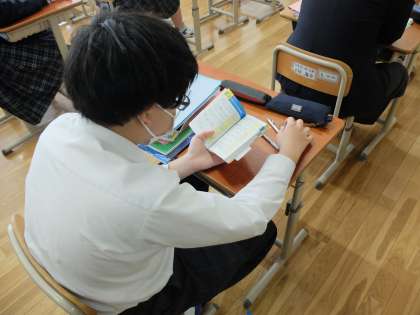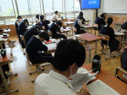 総括考査に向けて1時間目はテストの準備やテストに向けての自習の時間です。自分のやる気にスイッチを入れ,最後の追い込みをがんばっていました。どの生徒も真剣な表情です。