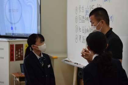 テスト終了後,すぐに質問に行く生徒もいます。