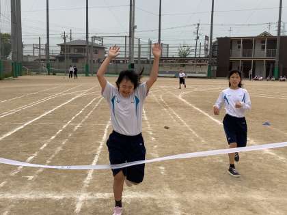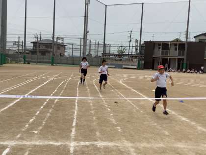 5〜9年生は100m走,7〜9年生はリレーの練習もがんばっています。