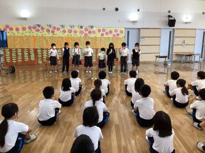 1回目の「なかよし会」がありました。1回目は3年生との交流でした。はじめはお互いに緊張していたようですが,ミュージックベルの演奏やクイズ大会がはじまると笑顔になり,とても楽しい会になりました。