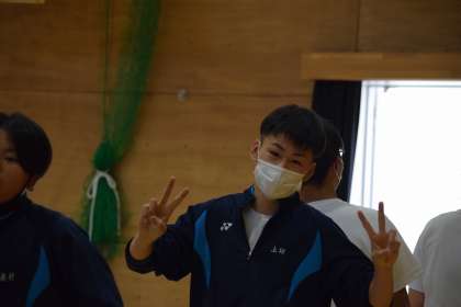 みんなが一生懸命頑張る姿を写真に撮っていると,すかさずピースを入れてくる人がいます。