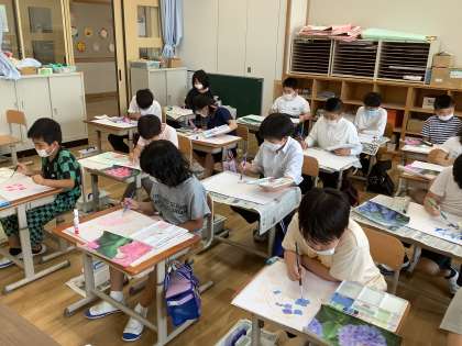 1組 図工「あじさいを描こう」