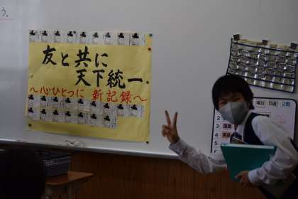 一文字一文字に思いを込めて,世界に一つだけの学級目標をできあがってきました。