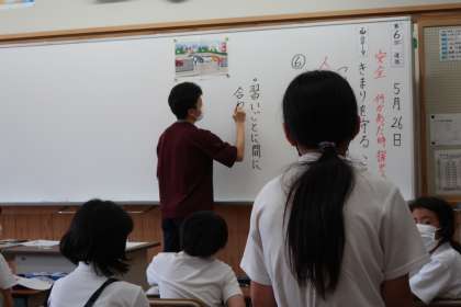 道徳では「通学路」というお話を通して「大切なきまり」について考えました。