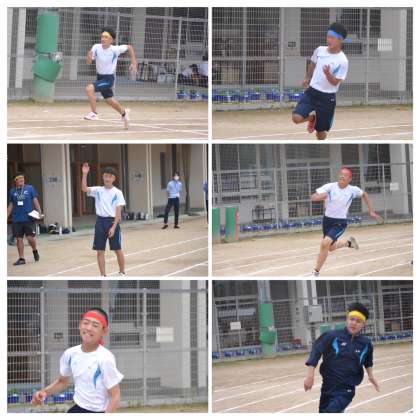 徒競走の次は全員リレーです。バトン代わりにボールやテニスボール&ラケット,縄跳びなども登場しました。