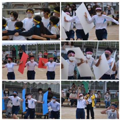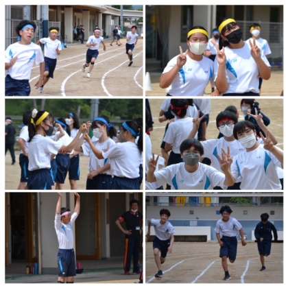 徒競走の次は,ビジョンステージ共通種目パーテーションリレーです。思いのほか難しいそうです。お互い異なる走るスピードを調整しながら走らないといけません。まさにチームワークが大切なようです。