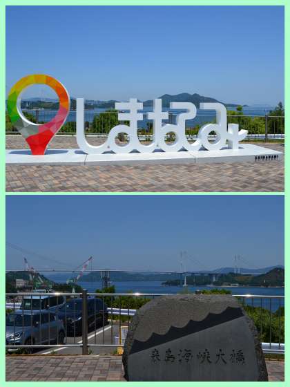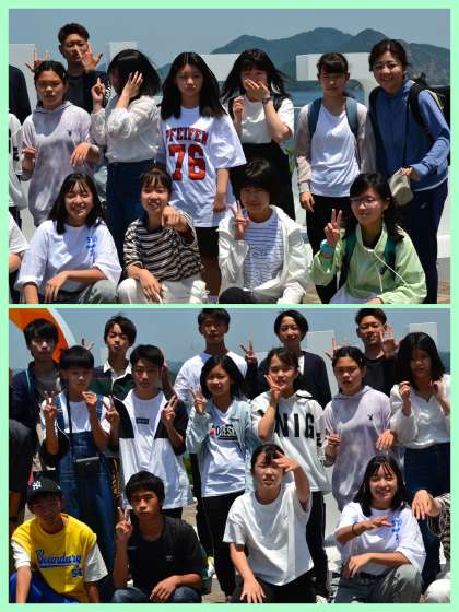 昼食場所の来島海峡SAです。昼食の前に学級写真を撮りました。