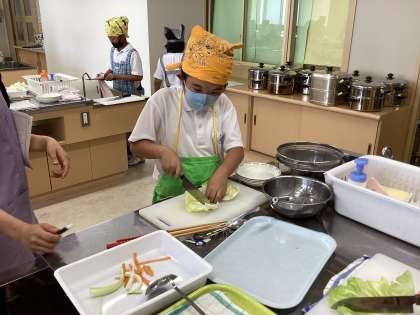 1組 5年生 家庭科「ゆでやさいサラダ」その2