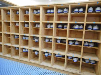 下靴は下の段,上靴は上の段に置くことで,外靴の砂が,校舎内に入ることを減らします。