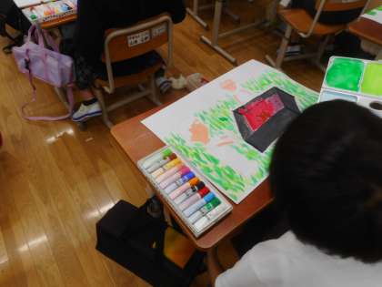 心に残ったあの時あの場所を,図工の時間に描きました。