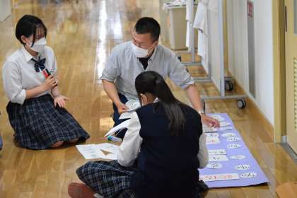 「先生,手が止まってますよ!」と生徒が伝えると,「かたじけない」と主任の先生が答えていました。