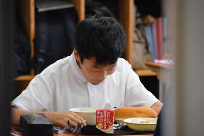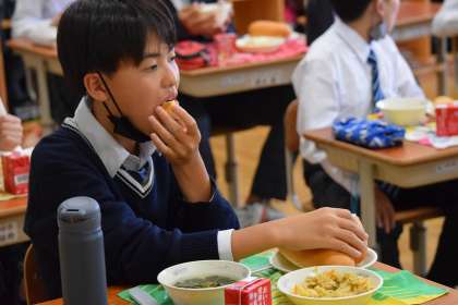 そんなナムルと一緒に,パンをほおばる生徒や,パン本来の味を噛みしめながら口に運ぶ生徒もいました。