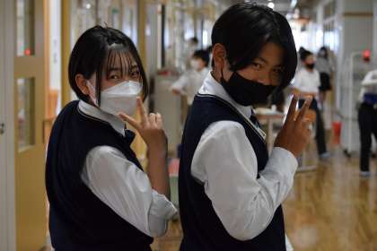 満面の笑みで「いってきます!」と行く生徒もいれば,「見に来てや!」と自信満々な表情で出発していく生徒もいます。