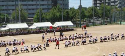 保護者の方の観覧スペースが十分確保できる別会場での開催を考えられなくもありませんが,今回のように酷暑になることもあり得ます。別会場となりますと,事前にテントの準備をするにも制限が加わりますし,テントの数が不足しておりますので,保護者用のテントは準備すらできません。学校で行うことで緊急時に対応しやすく,また,今回のように空調のきいた部屋で競技のない学年が15分間休憩を取るなどが可能となります。何よりも,1〜2年生には,練習やリハーサルができない別会場での実施は,混乱することが大いに予想されます。このような理由で,本校グランドで行うことを選択していることもご理解いただきますようお願いいたします。