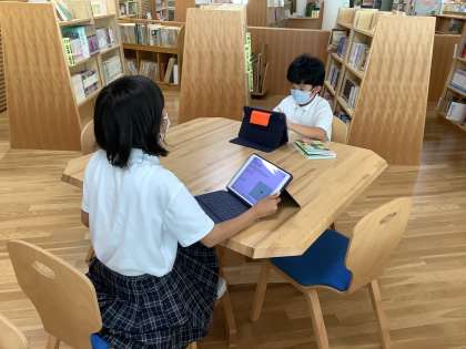 公園や校庭で撮った生き物の写真をもとに,Googleレンズや図書室の図鑑を使って調べています。季節によって生き物全体はどう変化していくのかについても興味をもって調べていってほしいと思います。