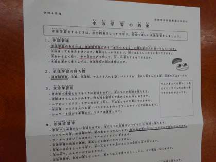 水遊びに向けて,事前に各クラスで持ってくるものや